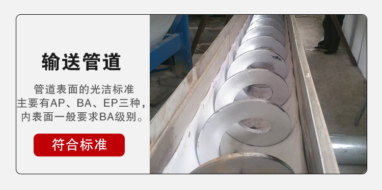 除了材質(zhì)以外,還對管道內(nèi)外表面有要求,特別是內(nèi)表面,一般都是要求BA級別,管道表面的光潔標(biāo)準(zhǔn)主要有AP、BA、EP三種,EP是電化學(xué)級別比較貴!所以不銹鋼螺旋輸送機(jī)使用到食品行業(yè)是可以的。