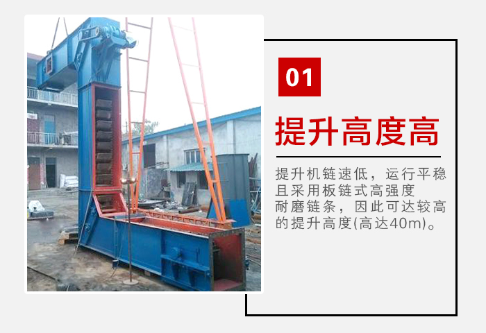 5、提升高度高:該系列提升機鏈速低,運行平穩(wěn),且采用板鏈式高強度耐磨鏈條,因此可達較高的提升高度(高達40m)。